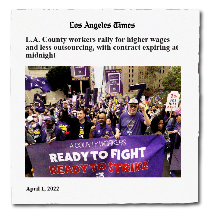 We are still euphoric about our thousands-strong “Fight for the Frontline”march and rally last week, which sent a clear message: We, the members of SEIU 721, are ready to fight and ready to strike! The media picked up our message, spreading it far and wide throughout LA County and beyond. … Read More